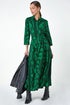 Roman Green Floral Leaf Print Midi Shirt Dress
