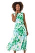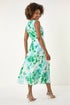 Roman Green Floral Pleated Neck Midi Dress
