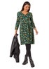 Learn moreFloral Print Button Detail V-Neck Dress from Roman. Embrace the beauty of the season in our charming floral button-detail dress. Adorned with a delicate floral print and stylish button details, this dress features a feminine v-neckline and long sleeves. Cut from a premium stretch jersey fabric, this knee-length dress falls into a flattering fit and flare silhouette that's easy to pull on. Complete your Autumn look by pairing it with a denim jacket and boots!