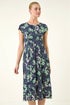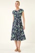 Floral Print Midi Tea Dress from Roman. Embrace the fresh blooms of Spring in this delightful floral tea midi dress. The charming floral print adorns this dress, featuring short sleeves and a classic round neck. Perfect for those sunny days, pair this dress with sandals and a denim jacket for a casual chic look that exudes effortless style and charm.