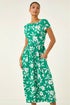Roman Green Floral Print Pocket Midi Dress