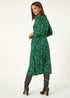 Roman Green Leaf Print Stretch Belted Dress