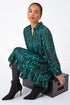 Roman Green Petite Animal Print Frill Hem Dress - Size 18