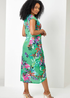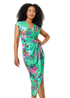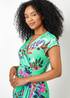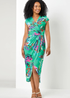 Roman Green Petite Tropical Print Ruched Wrap Dress