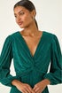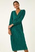 Roman Green Plisse Twist Front Midi Dress