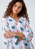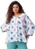 Polka Dot Print Pleat Front Top from Roman. Set sail for Summer in an easy breezy relaxed fit number! Crafted from a light woven material in a floaty fit, this v-neck top is complemented by a flattering pleat detail to the front. Styled with 3/4 length button cuff sleeves and a timeless spot print, our newest number is ideal for warm-weather dressing from home to holiday! It also features a dipped hemline with side splits for a loose finish. Update your casual collection by pairing this with denim jeans and sandals.