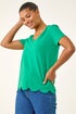 Roman Green Scalloped Hem V-Neck T-Shirt