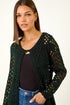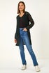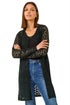 Shimmer Longline Knit Cardigan from Roman. Add a touch of shimmer to your Autumn wardrobe with this stunning longline cardigan. Featuring intricate stitch details, this cardigan is designed with long sleeves and a unique hook and bar fastening at the neck. The shimmer effect adds a touch of elegance to any outfit. Pair it with jeans and sandals for a casual yet chic look that will sparkle all season long!