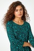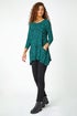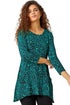 Spot Print Swing Stretch Top from Roman. Guaranteed comfort and style, this spot-print swing top is the perfect addition to your wardrobe this season. Cut from a comfortable stretch jersey fabric, this top features a modest round neckline and fun 3/4 length sleeves. Adorned in an abstract spot print, this piece has patch pockets for a practical edge and a flattering hanky hemline. Simply add relaxed denim and boots for an effortless day time style!