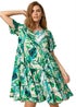Roman Green Tropical Print Tiered Pocket Shift Dress