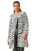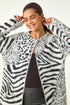 Learn moreAbstract Animal Print Fluffy Cardigan from Roman. Get wild with style in this unique abstract animal print fluffy cardigan. The black and ivory hues make a statement and the soft handfeel will keep you cosy all season long. With long sleeves and an edge to edge opening, this is the perfect layering piece for Autumn and Winter. Style it casually with a t-shirt and jeans for an effortlessly chic look that will stand out from the crowd!