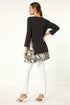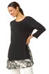 Abstract Contrast Mesh Stretch Tunic from Roman. Get ready to make a statement this Autumn in our striking print mesh hem tunic. Featuring a bold abstract print on a stylish mesh hem detail, this tunic is perfect for adding a touch of elegance to your wardrobe. The 3/4 length sleeves and round neckline offer a flattering and comfortable fit, while the stretch jersey fabric ensures you stay comfortable all day long. Pair with trousers and boots for a chic and sophisticated look that's perfect for the season!