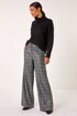 Roman Grey Check Print Tie Front Wide Leg Trouser