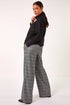• Roman Grey Check Print Tie Front Wide Leg Trouser