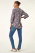 Floral Puff Print Stretch Shirt from Roman. Make a statement this Autumn/Winter season in this fabulous floral print ITY shirt. Featuring a trendy puff print and a flattering notch neck design, this shirt stands out from the crowd. Detailed with chic shoulder pleats and tab fastening on the 3/4 sleeves, this shirt offers both style and comfort. The stretch jersey fabric ensures a lovely fit, while the all-over floral print adds a touch of elegance. Pair with jeans and heeled boots for a fashion-forward look that is sure to turn heads!