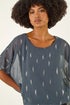 Foil Print Bubble Hem Top from Roman. Add a touch of glamour to your Autumn/Winter wardrobe with this stunning foil print bubblehem top. Designed in an overlay style with chic short sleeves and a classic round neckline, this top is perfect for both day and evening wear. The eye-catching foil print adds a touch of sparkle to any outfit, making it a versatile piece. Pair with your favourite jeans and heeled boots for a trendy and stylish look that will take you from day to night effortlessly!