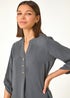 Roman Grey Longline Bow Button Woven Top