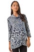 • Roman Grey Petite Brushed Animal Print Wrap Top