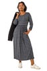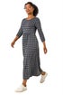 Petite Geometric Spot Midi Dress from Roman. Update your Autumn Winter wardrobe with our Petite geometric spot print midi dress. Featuring a flattering round neckline and 3/4 length sleeves, this abstract piece is complete with functional side pockets and gathered waist detail for a touch of elegance. Crafted from a stretchy jersey fabric, this dress has ruching to accentuate your figure, making it the perfect go-to for any occasion. Finishing at a modest midi length, pair effortlessly with a denim jacket and boots for a stylish look!