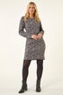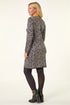 Petite Leopard Knit Mini Dress from Roman. Unleash your wild side this Autumn/ Winter in this fierce leopard knitted mini dress. With a flattering round neck and long sleeves to keep you warm, this dress hits above the knee for a flirty finish. Pair with tights and ankle boots for a stylish and edgy look that's perfect for the cooler seasons.