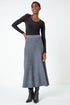 Roman Grey Plain Elastic Waist Knitted A Line Midi Skirt