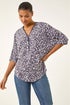 Printed Zip Front V-Neck Stretch Top from Roman. Let's get ready to embrace season in style with this stylish floral printed top. Designed with a zip front detail and flattering 3/4 kimono sleeves that finish in a tee shape, this top is perfect for a casual yet trendy look. Crafted from stretch jersey fabric that exudes both comfort and style. Pair it with jeggings for a complete outfit that will keep you fabulous all day long!