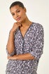 Roman Grey Printed Zip Front V-Neck Stretch Top