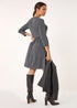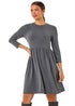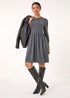 Roman Grey Ribbed Gathered Waist Stretch Dress