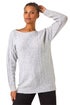 Sequin Cable Knit Jumper from Roman. Get ready to shine this Autumn/Winter season with this dazzling cable knit jumper. Covered in sequin yarn, this super soft jumper features a stylish slash neck and long sleeves for extra warmth. The cosy, comfortable fabric ensures you'll feel snug and chic. Pair with your favourite jeans and ankle boots for a stunning outfit that will sparkle wherever you go!