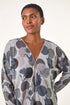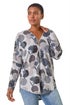 Roman Grey Spot Print V-Neck Zip Front Stretch Top