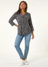 Textured Paisley Print Stretch Blouse from Roman. Add playful prints to your casual collection this Autumn with our printed notch neck top. Cut from a comfortable stretch jersey fabric, this blouse features 3/4 length sleeves with adjustable button tabs and a playful pleat detail at the shoulder. Adorned in a bold puff print design, this comfy casual piece is sure to bring some life into the colder months. Pair with jeans for a sophisticated daytime style.