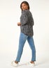 Roman Grey Textured Paisley Print Stretch Blouse