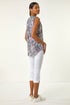 Textured Print Vest Top from Roman. Stay stylish this Spring and Summer in this gorgeous textured print sleeveless top. Featuring an all-over butterfly and floral print, this top is designed with a unique puff print vest over a notch neck top, giving it a fashionable edge. The sleeveless style and gathers at the sleeve head add a feminine touch to the look. Pair with jeans and sandals for a chic and casual outfit that's perfect for everyday wear.