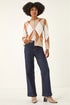 Roman Indigo Cotton Blend Wide Leg Stretch Jeans