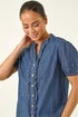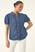 Roman Indigo Petite Frill Front Buttoned Blouse