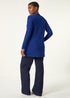 Roman Ink Blue Longline Stretch Ribbed Cardigan