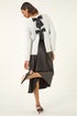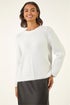 Bow Back Metallic Knit Jumper from Roman. Embrace cosy style with a twist in this bow back knit jumper. With a soft hand feel in a lovely metallic yarn, this crew neck jumper boasts long sleeves for extra warmth. The unique bow detail at the back adds a touch of glamour to this classic piece. Pair with wide-leg jeans and ankle boots for a complete look this Autumn Winter season!