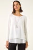 Chiffon Overlay Necklace Top from Roman. Wrap yourself in elegance with this chiffon overlay top, perfect for the Autumn/Winter season. Crafted with a romantic all over chiffon overlay, this top comes with a complimentary necklace to complete the look. The long sleeves and round neckline provide a cosy silhouette that finishes at the hip for a flattering fit. Pair with jeggings and ankle boots for a sophisticated and chic ensemble.