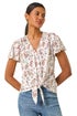 Roman Ivory Floral Buttoned Tie Hem Top