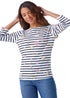 Floral Print 3/4 Sleeve Stripe Top from Roman. Add some cute combination prints to your collection with this floral stripe top. Crafted from a soft stretch cotton material this piece boasts 3/4 length sleeves and a simple round neckline. Designed to pull on, overhead with no tricky fastenings this is bound to become a favourite. A base stripe is layered with a pretty floral print creating an intricate aesthetic. Pair with mom jeans and trainers for a fresh, fun look!