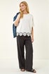 Floral Trim Knit Top from Roman. This style is ONE size and will suit ladies up to a size 18. Stay stylish and cosy in this delightful floral trim knit jumper. Crafted from a lovely soft knit fabric, this jumper features charming floral detailing on the trim, adding a touch of femininity to your Spring/Summer wardrobe. With short sleeves for a light and comfortable feel, this jumper is perfect for pairing with jeans and trainers for a chic casual look that will keep you feeling fabulous all season long!