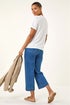 Foil Foliage Print T-Shirt from Roman. Make a statement in this stunning foil printed top, perfect for the Spring/Summer season. Crafted from a soft, stretchy jersey fabric, this top features a unique foil printed placement design that adds a touch of glamour to any outfit. With a flattering hip-length finish and a classic round neckline, this top is versatile and stylish. Pair it with your favourite jeans and trainers for a casual yet chic look that is sure to turn heads!