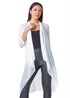 3/4 Sleeve Mesh Longline Kimono from Roman. Glamorous and practical, this sheer kimono will keep the chill from your arms while not distracting from your main outfit. With a long open waterfall neckline and frilly edges this jacket is classic and feminine. Lightweight and airy, this jacket is a must have.