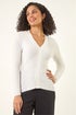 Roman Ivory Ribbed V-Neck Cable Knit Jumper