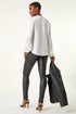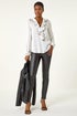 Learn moreRuffle Front V-Neck Satin Blouse from Roman. Let your outfit do the talking with our elegant v-neck satin blouse. Adorned with a charming ruffle front and button detail, this blouse boasts a full opening with a feminine v-neckline. Featuring cosy long sleeves finished with elasticated cuffs while staying stylish in a flattering hip-length blouse shape. Perfect for parties or laidback events, this comfortable woven blouse pairs beautifully with wide-leg trousers and heeled boots for a glam look!