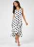 Roman Ivory Spot Frill Hem Asymmetric Midi Wrap Dress