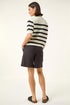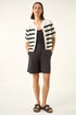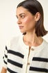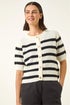 Stripe Button Knit Cardigan from Roman. Upgrade your knitwear collection with this stripe button down cardigan, a perfect piece for the season. Featuring a classic crew neck and short sleeves, this cardigan is crafted from a mix of soft knit fabrics for ultimate comfort. The button-up detail adds a touch of elegance to this relaxed style. Pair with wide-leg jeans for an effortless look!