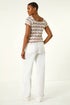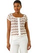 Wave Crochet Buttoned Top from Roman. Elevate your Spring/Summer wardrobe with this charming wave crochet top. This delightful piece features intricate crochet detailing in a playful wave pattern and is complete with a button-up front and short sleeves. Ideal for warm weather days, this top effortlessly pairs with jeans and sandals for a chic and casual look that exudes laid-back elegance.