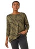 Roman Khaki Abstract Line Print Stretch Jersey Top