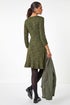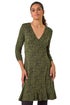 Roman Khaki Floral Print Wrap Front Stretch Dress